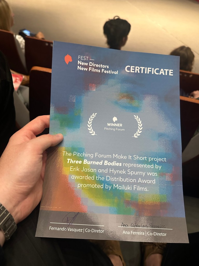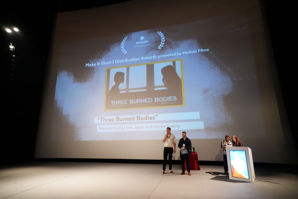 Thrilled to announce that the Pitching Forum project Make it Short THREE BODIES BURNING represented by Erik Jasaň and Hynek Spurný was awarded the Distribution Award promoted by Mailuki Films.